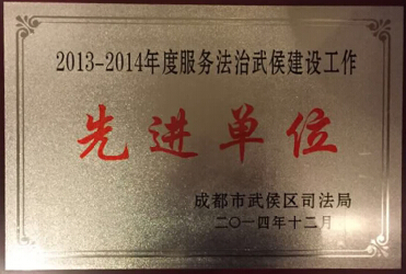 我所被评为“2013-2014年度服务法治武侯建设工作先进单位”